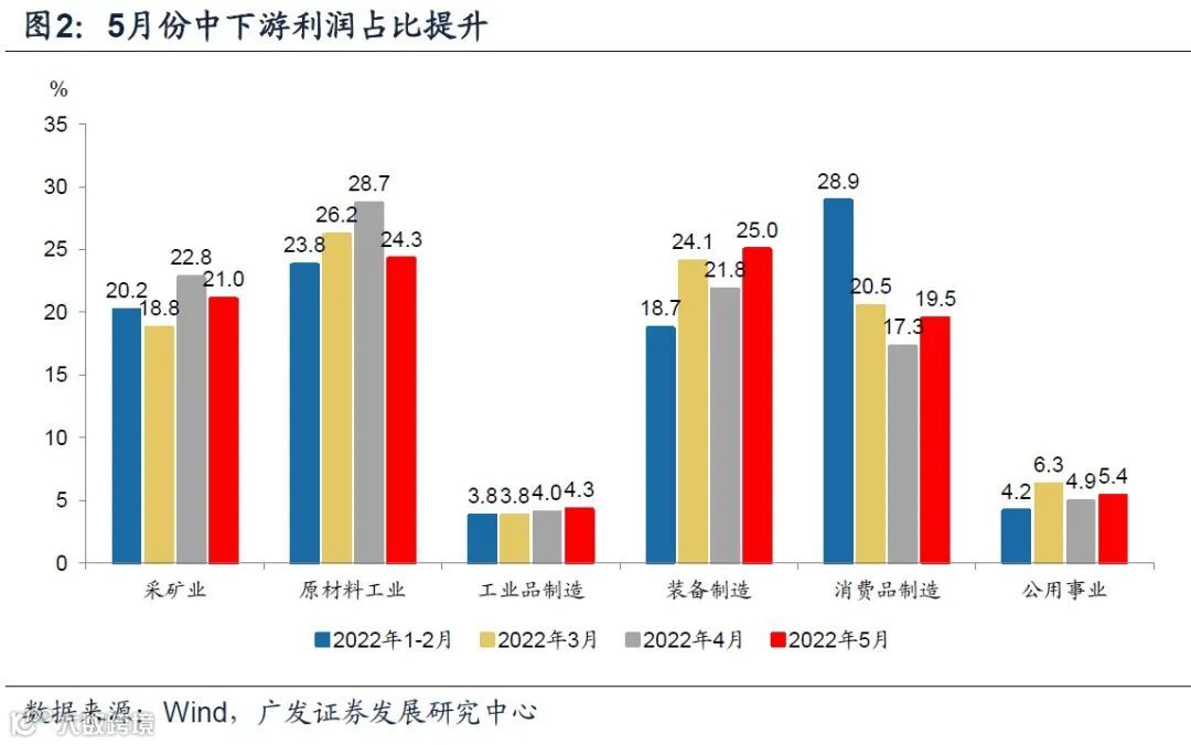 5月采掘业增量利润占比21%,2022年1-2月、3月、4月占比分别为20.2%、18.8%和22.8%。