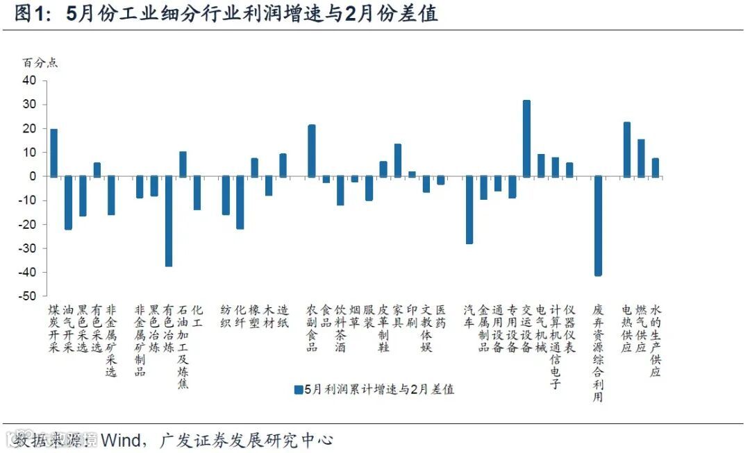 1-5月,采矿业、制造业和公用事业利润同比分别为130.9%、-10.8%、-24.7%,采矿和制造业利润增速分别较前值回落15和2.5个百分点,公用事业利润增速环比小幅回升4.6个百分点。