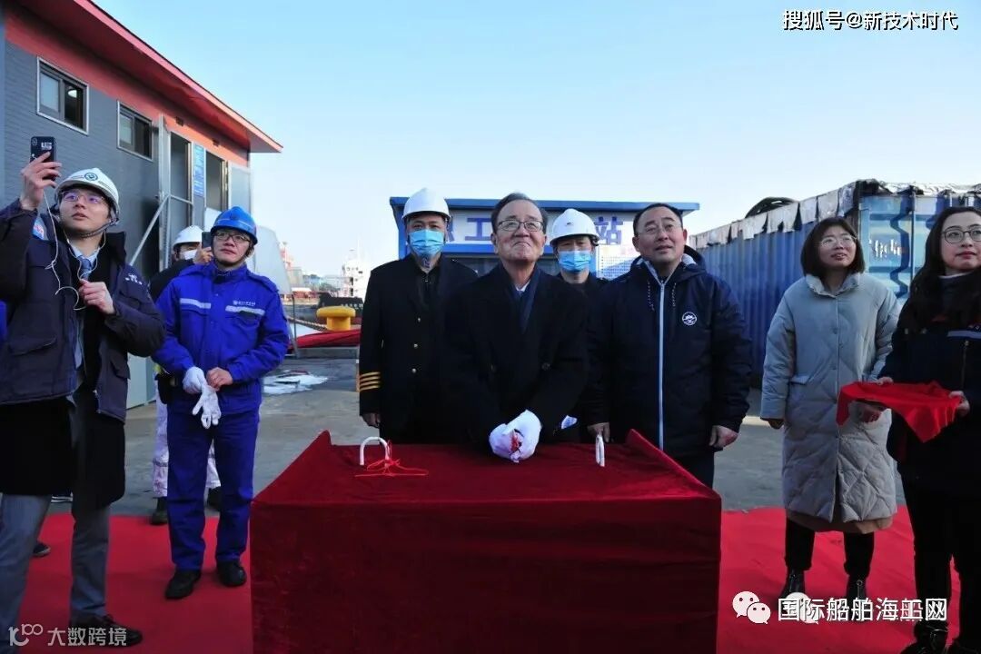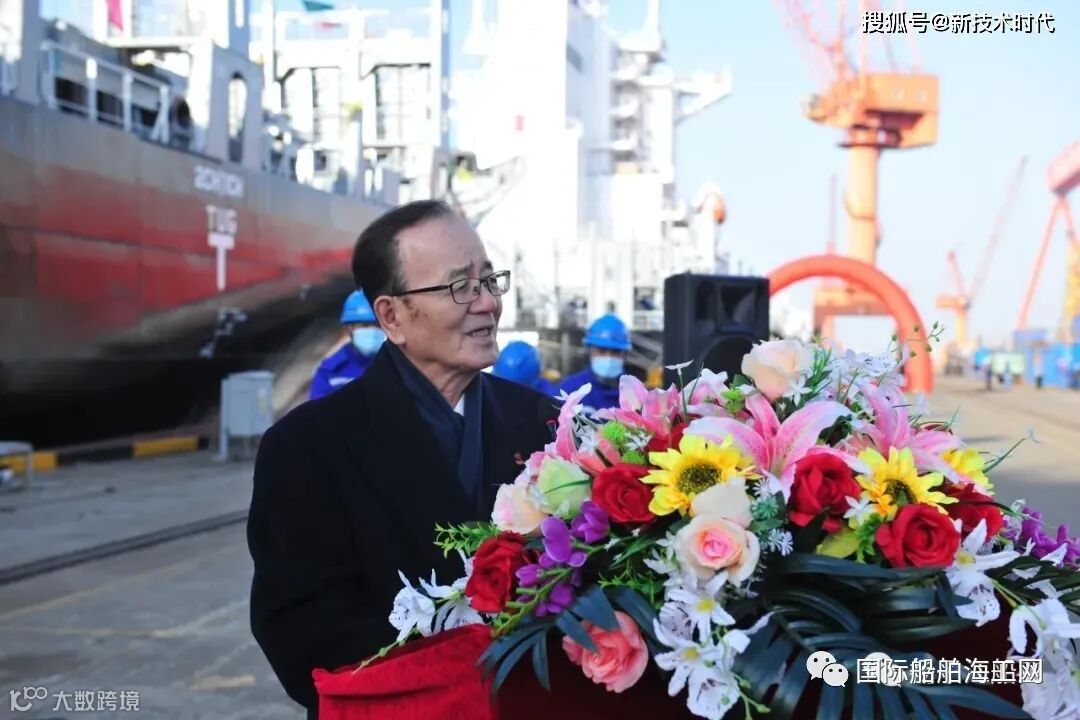 ▲1月29日上午,扬子江船业集团为日本PSM船东建造的装脱硫洗涤塔的首制1800TEU箱船在新扬子造船顺利命名交付。