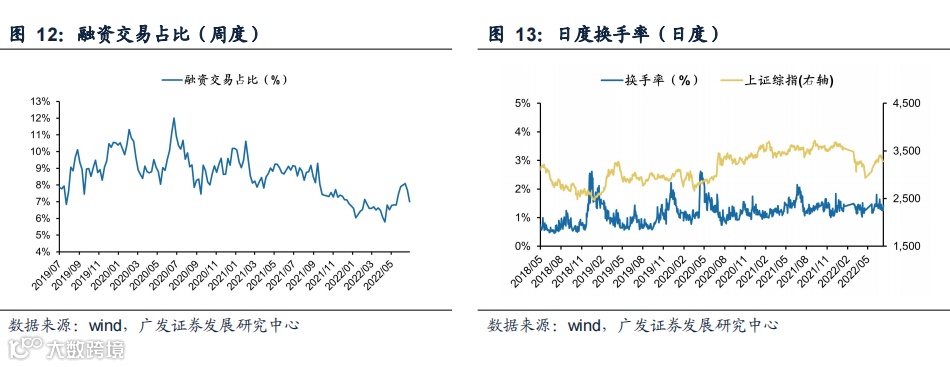 (1)融资交易占比:上周为7.0%,前一周为7.7%;