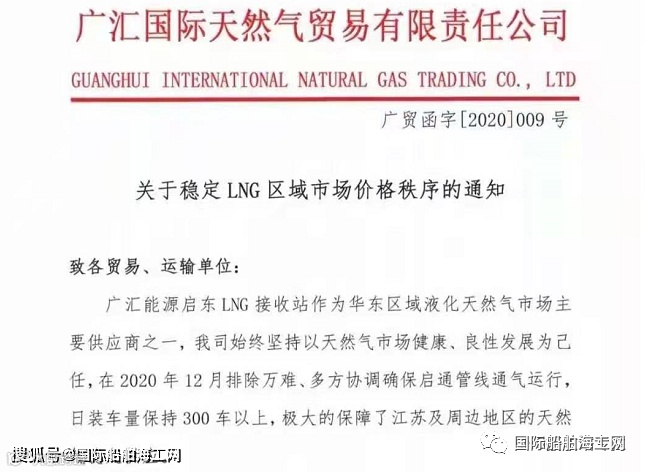 广汇国际天然气贸易有限责任公司也发布了《关于稳定LNG区域市场价格秩序的通知》