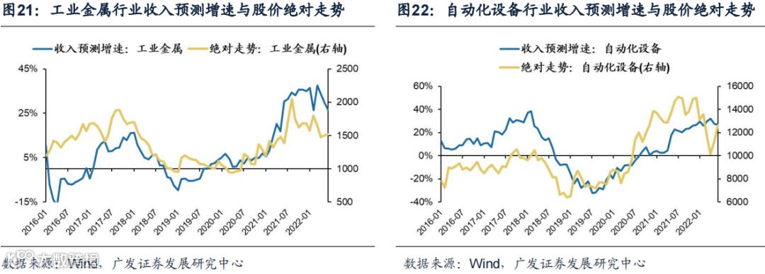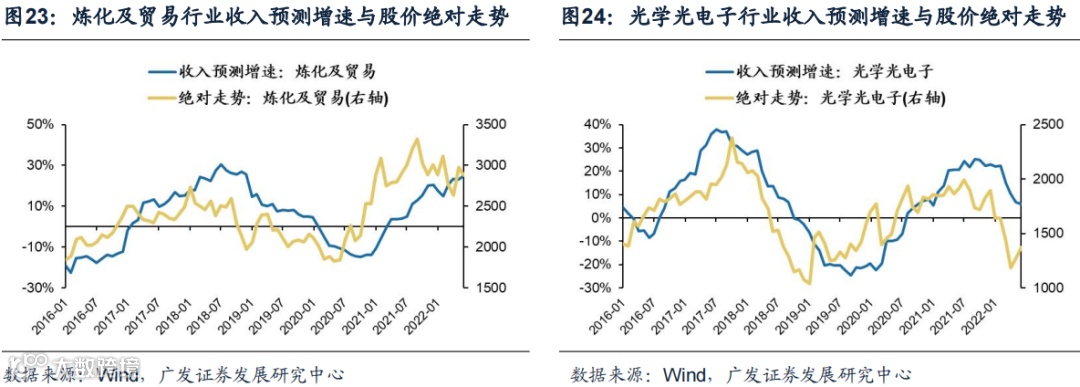 二级行业中,分别有22个和32个行业的收入景气预期与股价绝对走势具有高相关性或中相关性,其中高相关的行业按照行业风格分类如下: