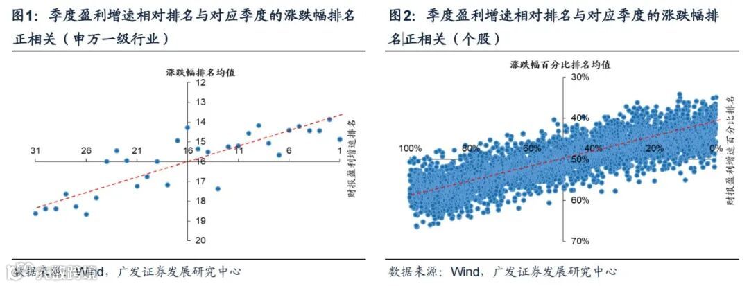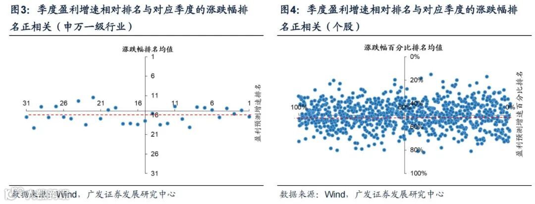 (2)从个股视角来看,自2003年至2022年一季末,当季盈利增速排名靠前的个股在当季的涨跌幅排名也同样往往更为靠前,而盈利增速靠后的个股涨跌幅同样往往更为落后。因此从个股视角看,如果能够投资当季盈利增速排名靠前的个股,在投资收益上也是大概率能领先市场的。