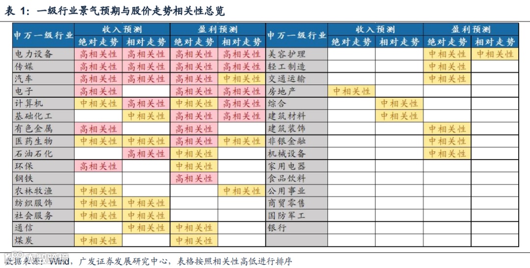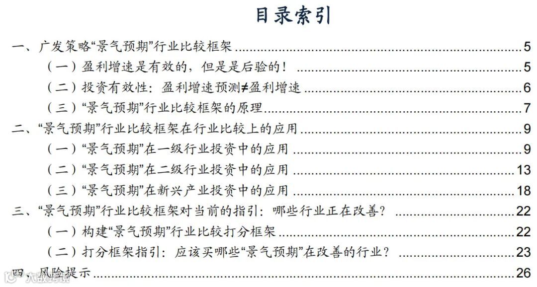 1广发策略“景气预期”行业比较框架
