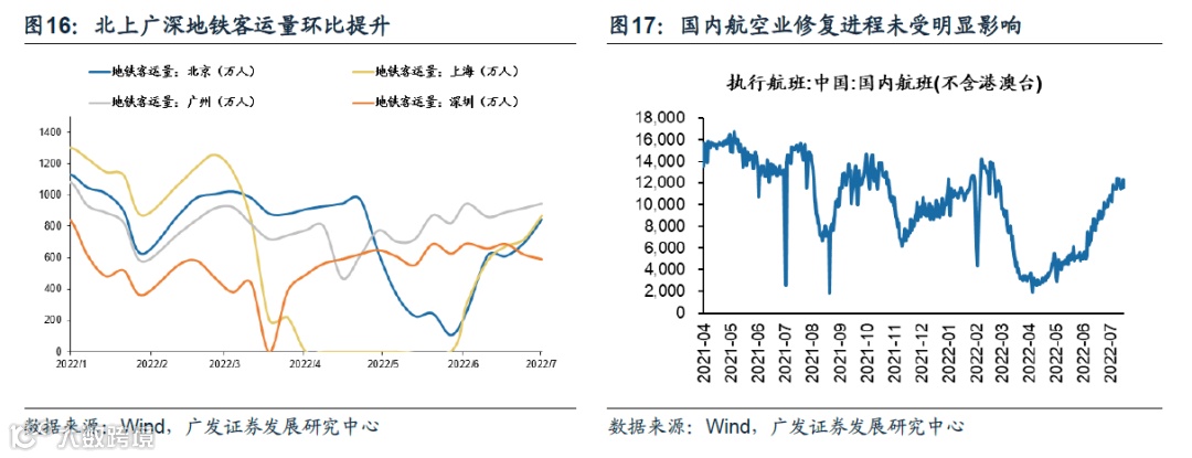 高频数据来看全国疫情仍在可控范围,交互出行暂未受到太大影响,较4月的局部封锁状态有明显改善。尽管疫情阶段性抬头,但仍在可控范围之内,全国新增本土确诊病例于7月2日即触顶于385例,此后持续回落。高频数据来看,全国执行航班数,及疫情重点地区交通拥堵、地铁客运量等出行数据均在恢复通道当中。