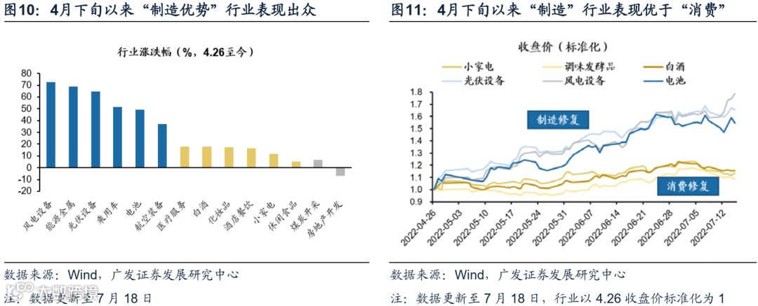 正是由于中国经济的疫后修复存在先生产(制造)、后生活(消费)的特征,因此“此消彼长”行情下的增量资金率先布局“中国制造优势”——