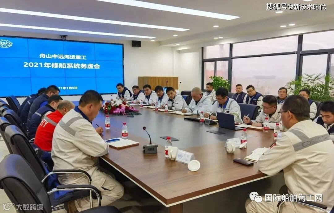 2021年1月5日,舟山中远海运重工召开2021年修船系统务虚会。公司总经理周建华,副总经理龚伟兵、刘权,以及修船系统各部门、工区负责人参加会议。会上,修船管理部全面总结2020年修理改装整体情况,重点就2021年抢抓坞期、缩短周期等重点工作作了详细汇报;经营部结合航运市场形势,就2021年经营接单、客户服务等工作作了详细汇报;修船系统各工区以及生产保障系统分别结合2020年修船系统全年工作对2021年各项工作目标作了汇报。