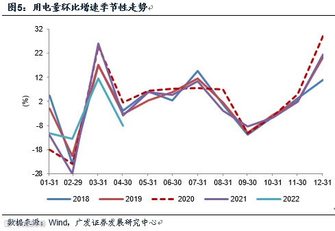 用电量指标可以作为整体经济运行的一个影子指标,以用电量环比的季节性规律观测,会发现疫后约有三个季度时间它整体在环比季节性规律的偏上限运行。
