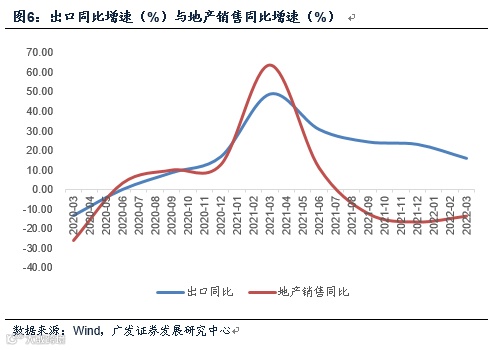 2020-2021年经济的增长动能之一出口高增长。2020年三季度-2021年四季度出口的同比增速分别为8.4%、16.6%、48.8%、30.6%、24.2%、22.9%。同时,在这轮常态化防控阶段的七个季度中至少有五个季度地产销售处于中高增速,2020年二季度-2021年四季度同比地产销售分别为3.2%、9.9%、12.7%、63.8%、11.0%、-12.5%、-16.8%。