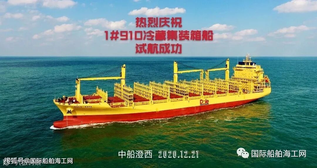 12月23日上午10点,在经过连续六天奋战后,中国船舶集团旗下中船澄西造船为美国船东建造的最高航速、最大烟气洗涤塔脱硫处理能力的1号910冷藏集装箱船试航凯旋,32个试验大项全部一次通过,船舶航速、油耗等性能表现优良。