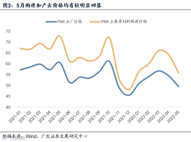 5月原材料购进价格回落8.4个点,产出价格回落4.9个点。