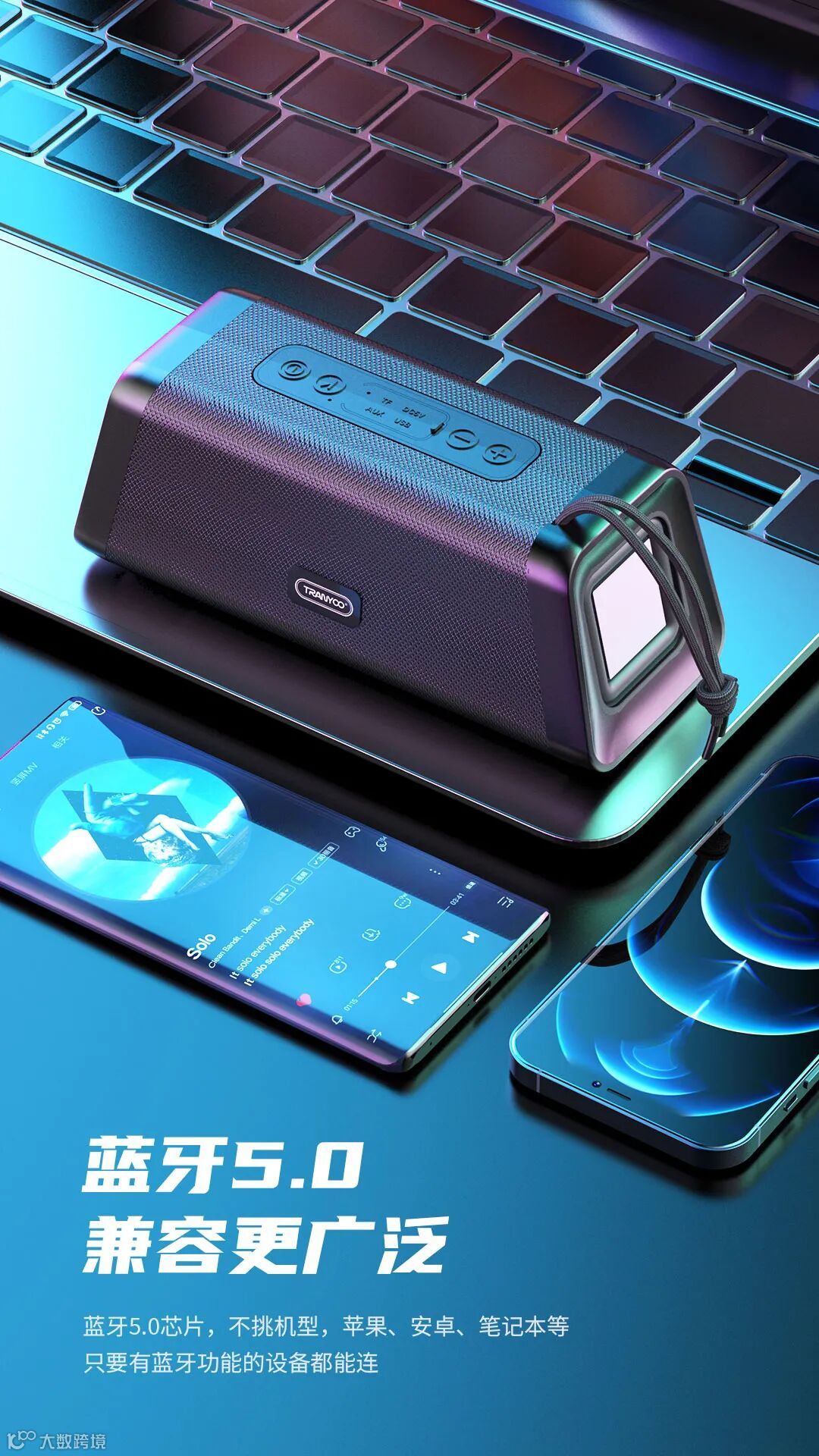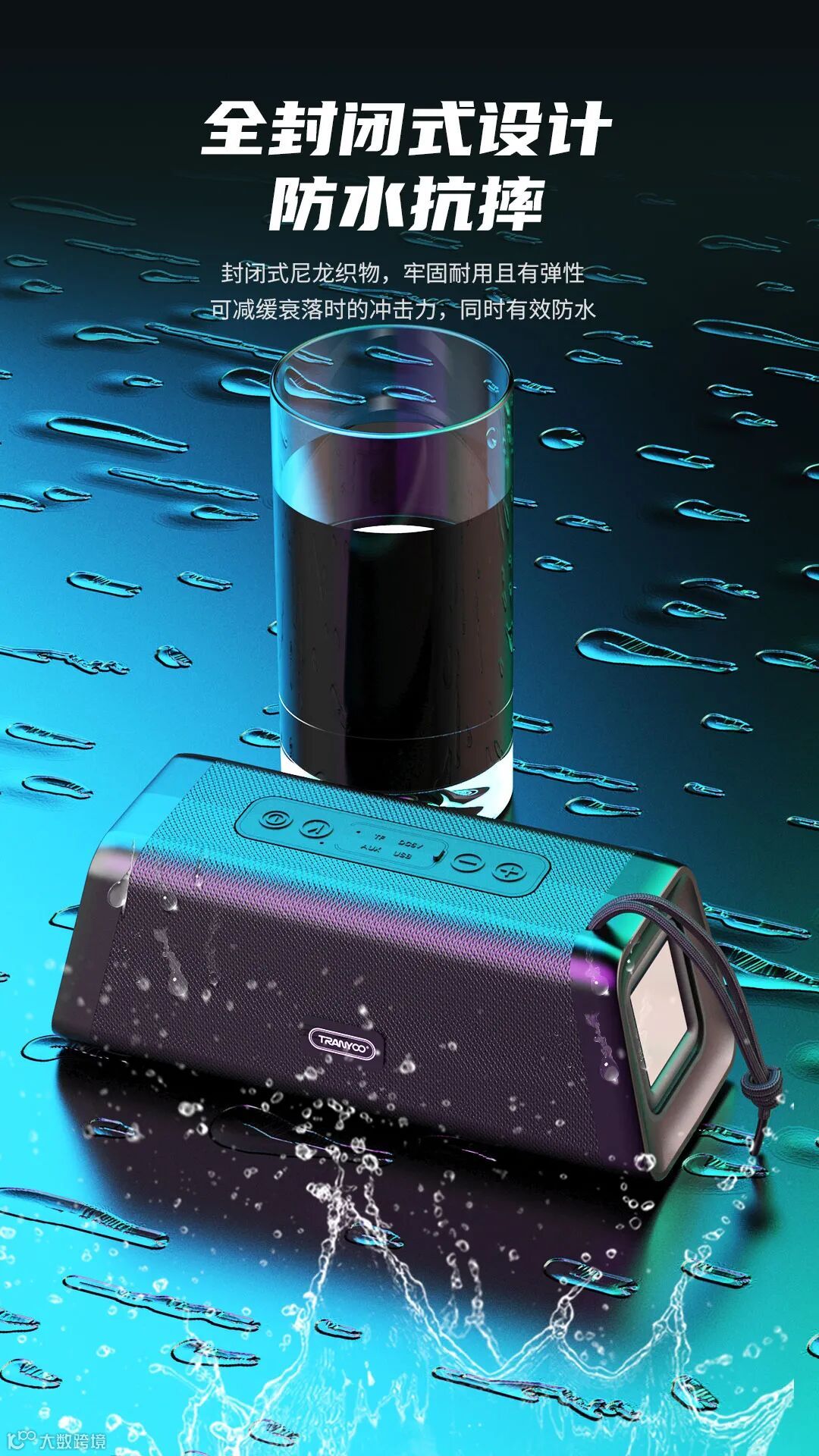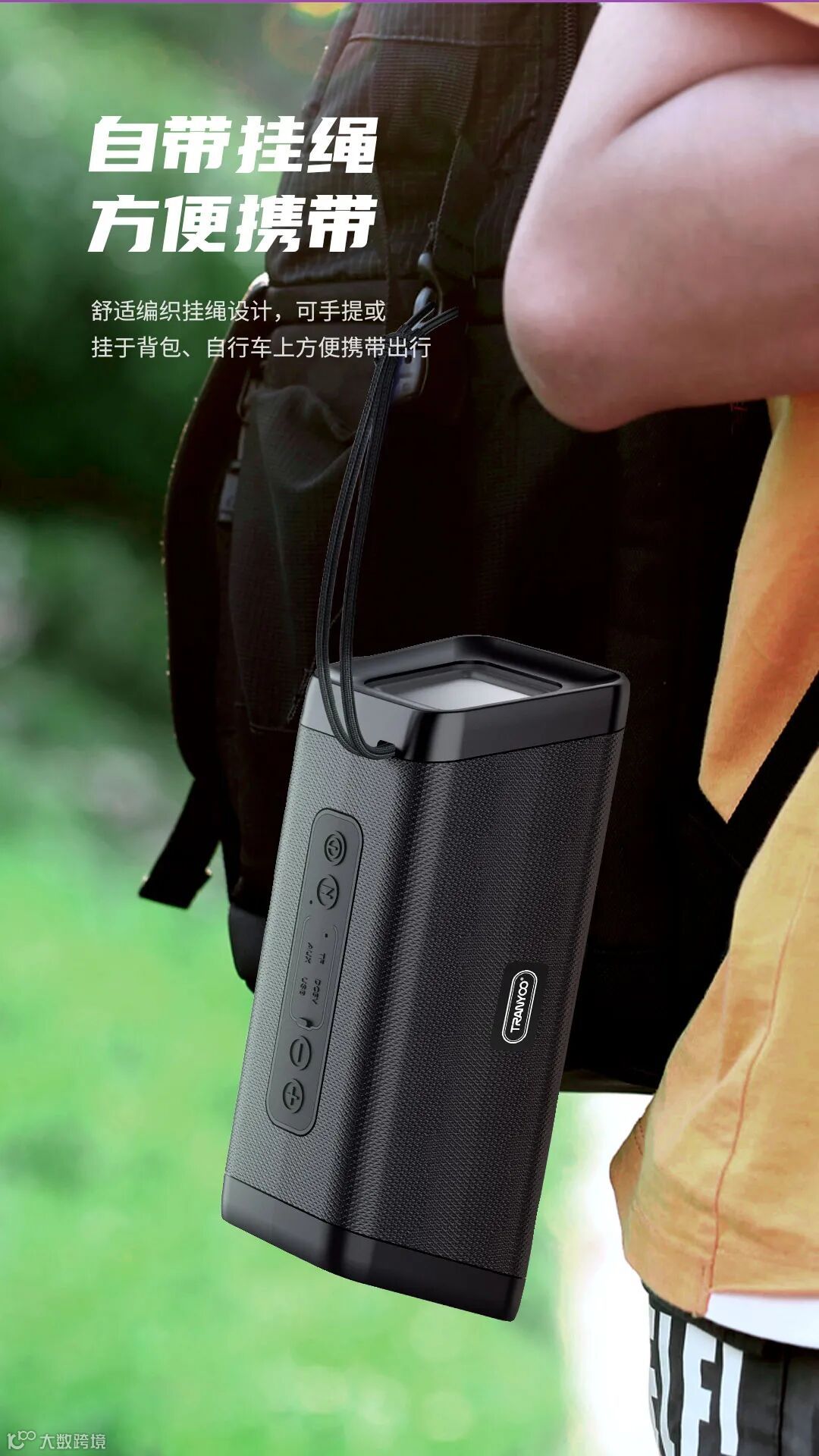 1.全频喇叭,双声道。2.超长播放时间连续听歌8小时3.支持音频AUX,TF卡,优盘,蓝牙四种播放模式。