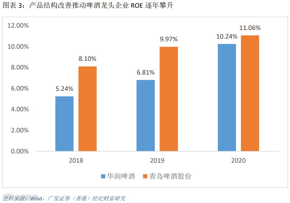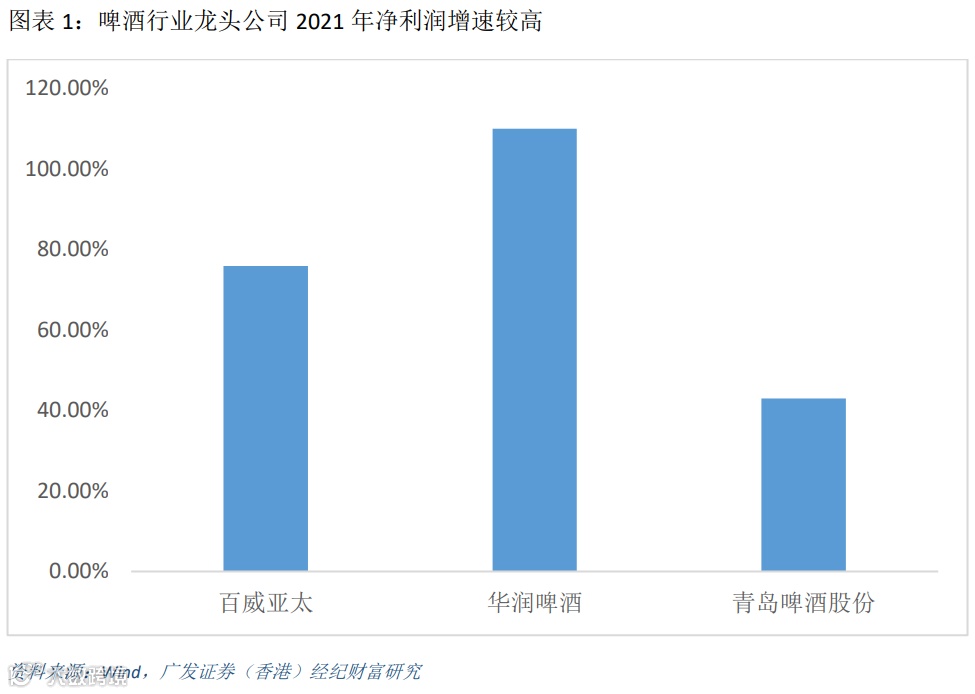 得益于高端化,主要啤酒龙头企业2021年业绩表现超预期近日主要啤酒企业公布了2021年业绩情况。百威亚太2021年录得营业收入67.88亿美元,同比增长14.9%,EBITDA录得21.39亿美元,同比增长27.3%,实现净利润9.8亿美元,同比增长75.9%,全年吨酒价同比上升6.1%,总销量同比增长8.3%,业绩表现优秀的原因是高端及以上产品销售都录得双位数增长。华润啤酒预告2021年实现归母净利润44-47亿元(人民币,下同),同比增长110-124%,业绩大幅增长的主要原因是获得出让地块的补偿收益13亿元、产品提价推动毛利率提升和关厂带来的固定资产减值及员工安置费用下降。青岛啤酒股份预告2021年实现归母净利润约为31.50亿元,同比增长43%,扣除非经常性损益的净利润为21.94亿元,同比增长21%,业绩增长是由于产品结构升级对经营利润的拉动及土地征收补偿款带来的非经常性收益。