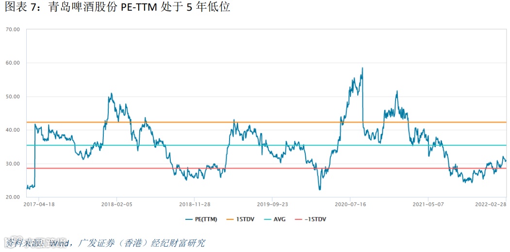 投资建议啤酒行业竞争格局稳定,CR5市场份额已经提升至90%以上,行业集中度高企使得啤酒行业能够脱离低价竞争并开始进行高端化升级。在竞争趋缓的环境下,龙头酒企费用支出维持稳定,推动ROE改善,行业整体盈利能力步入上升通道。预计2022年啤酒行业将通过产品结构升级和提价来推动盈利水平持续提升。目前啤酒板块PE-TTM估值处于五年以来的低位,建议关注具备提价能力、高端化进展顺利的华润啤酒(0291.HK)、青岛啤酒股份(0168.HK)及产品组合向超高端升级的高端啤酒龙头百威亚太(1876.HK)。