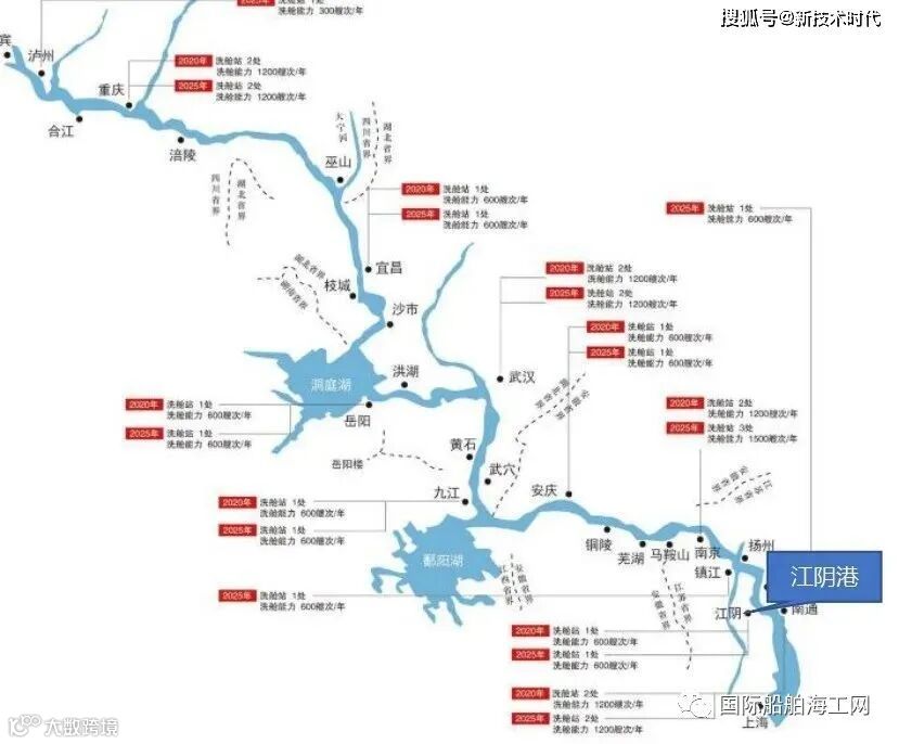 加快推进洗舱站建设,是落实国家推动长江经济带发展领导小组《关于加快推进长江干线水上洗舱站建设的通知》(第110号)要求,也是加强江阴港水运生态环保,推进长江生态环境保护、实现高质量发展的具体措施。根据交通运输部《长江干线水上洗舱站布局方案》,结合沿江港口危化品吞吐量、长江危化品船舶换装需求以及大型石化产业园布局等发展态势,统筹考虑港区服务功能及修造船厂分布等因素,全国在长江干线流域首批共布局13处洗舱站。近日,江苏港航在报道江阴港石利港区长江干线水上洗舱站项目顺利通过洗舱调试运行验收时,发布了长江干线水上洗舱站建设分布图如上图。