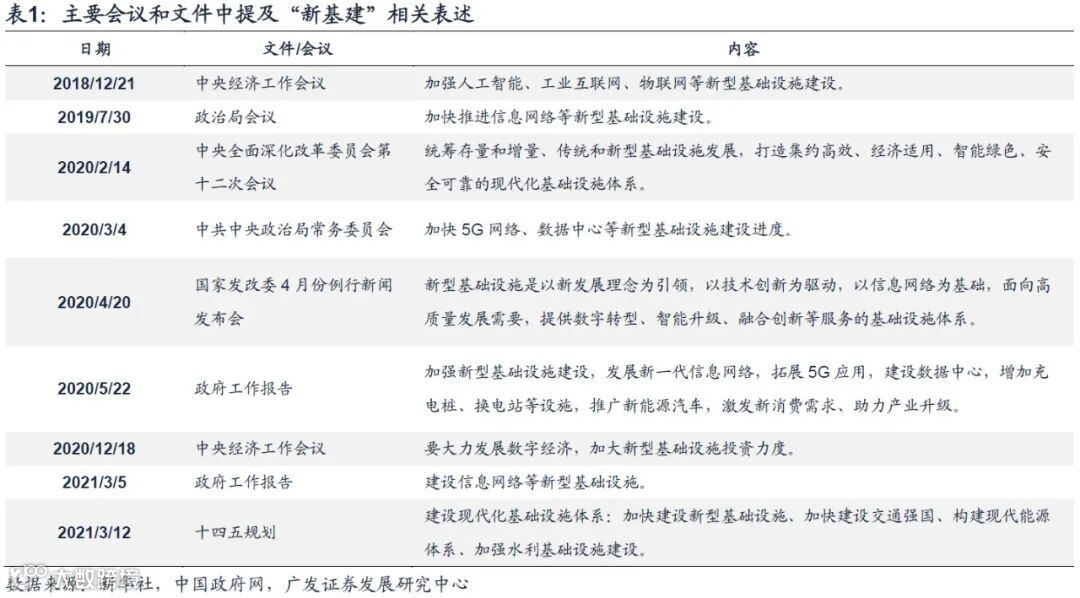 新基建是什么时候提出的?2018年底中央经济工作会议提出“加快5G商用步伐,加强人工智能、工业互联网、物联网等新型基础设施建设”,标志着“新基建”概念在官方文件中正式出现。在政策把产业基础高级化和产业链现代化当作既定目标,以及政策需要稳定宏观杠杆率的背景下,“新基建”的提出具备一定必然性。