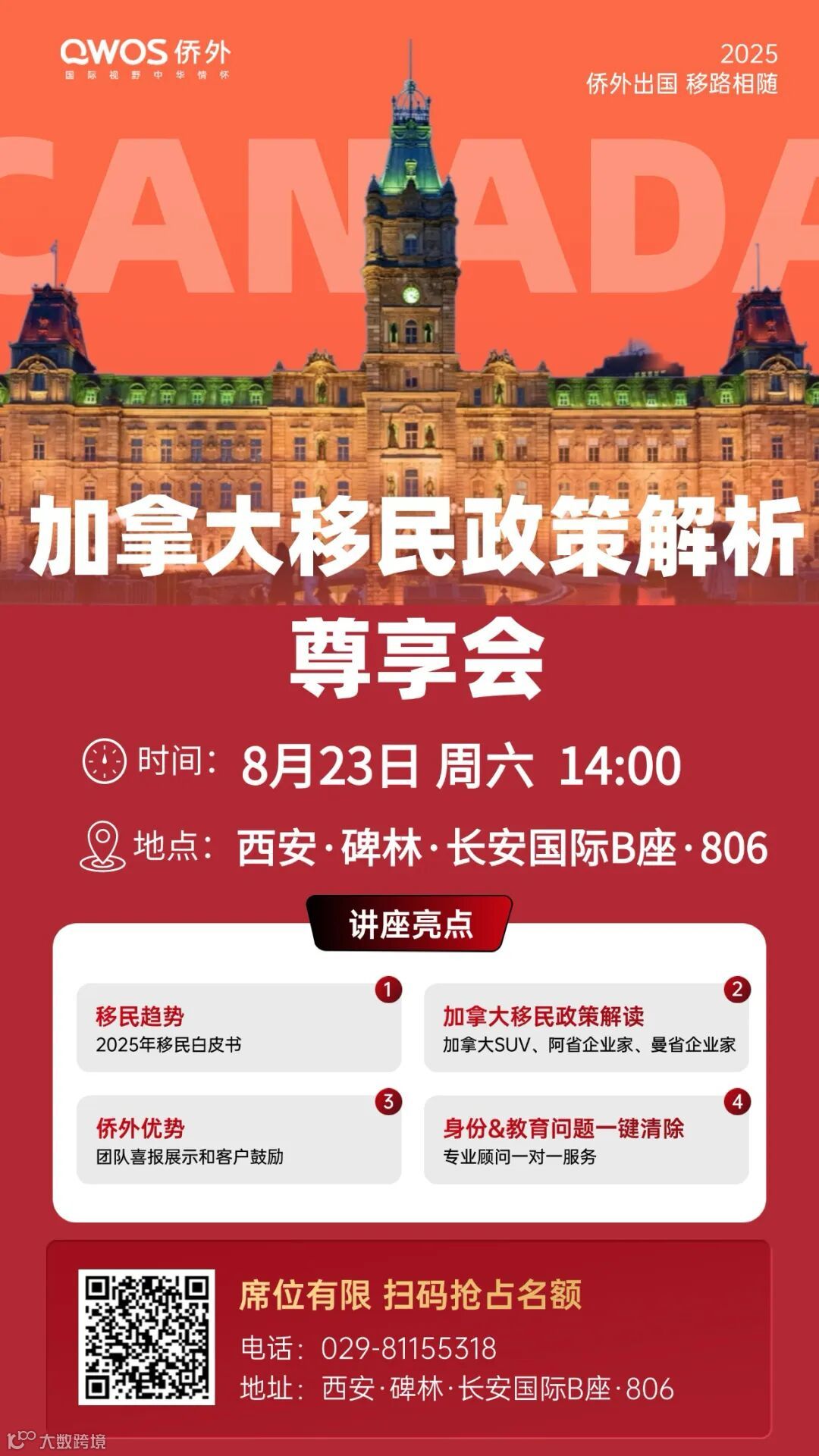 在全球化浪潮的推动下,移民已成为众多人寻求优质生活与发展机遇的热门选择。北美,这片充满机遇与活力的土地,以其发达的经济、卓越的教育资源和多元包容的社会环境,吸引着来自世界各地的人们。8.23 周六 14:00 西安·碑林·长安国际B座·806 就让我们一同深入探索北美移民的方方面面。