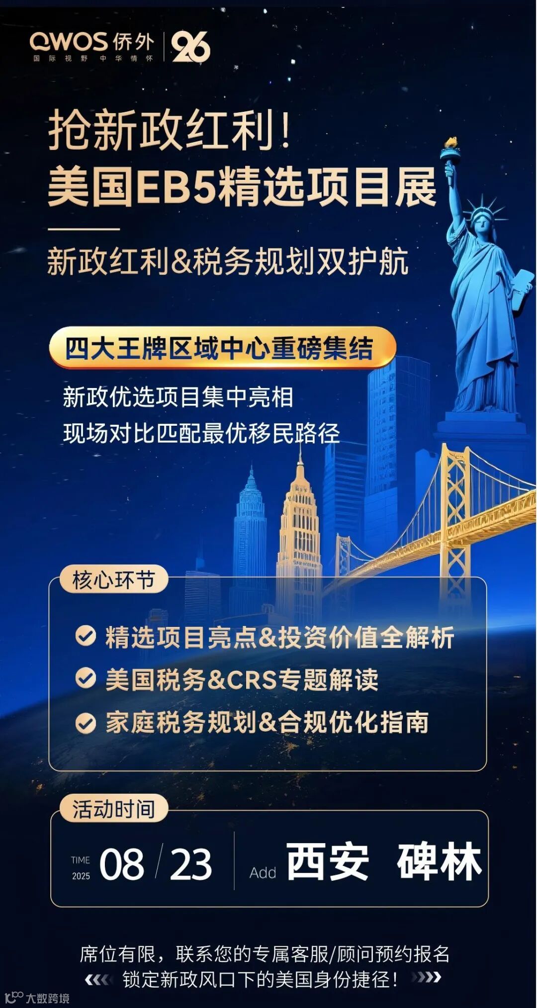 新政机遇:两大区域中心集结,优选项目集中亮相,对比匹配最适合的 EB5 移民路径,投资移民怎么选、有哪些新趋势,现场一次理清;
