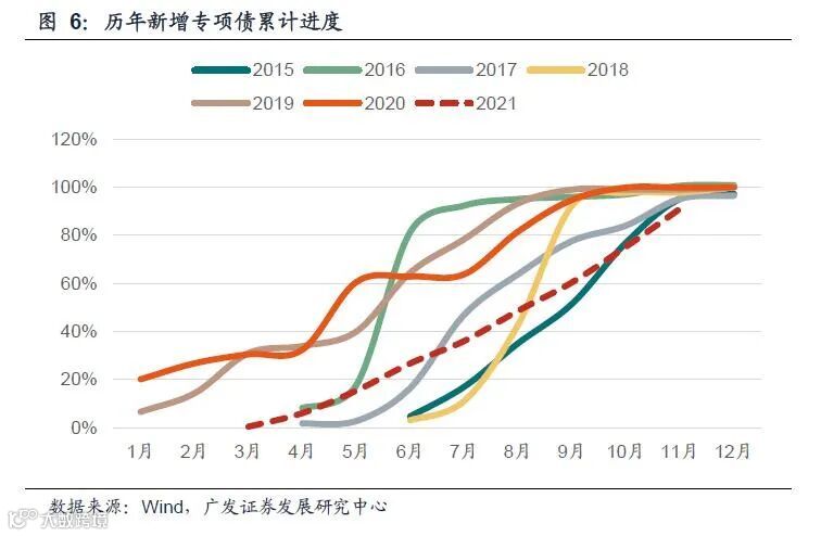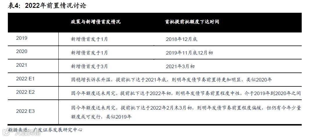 因此,第一项原因或将导致第二项原因的计划推迟,前倾程度放缓,类似2019年;也可能不影响提前批下达,前倾程度加深,类似2020年。具体情形我们在正文表4中均有罗列。但正如前文所述,明年前倾的概率提高是相对明确的,只是可能会出现程度和节奏分布的不同。
