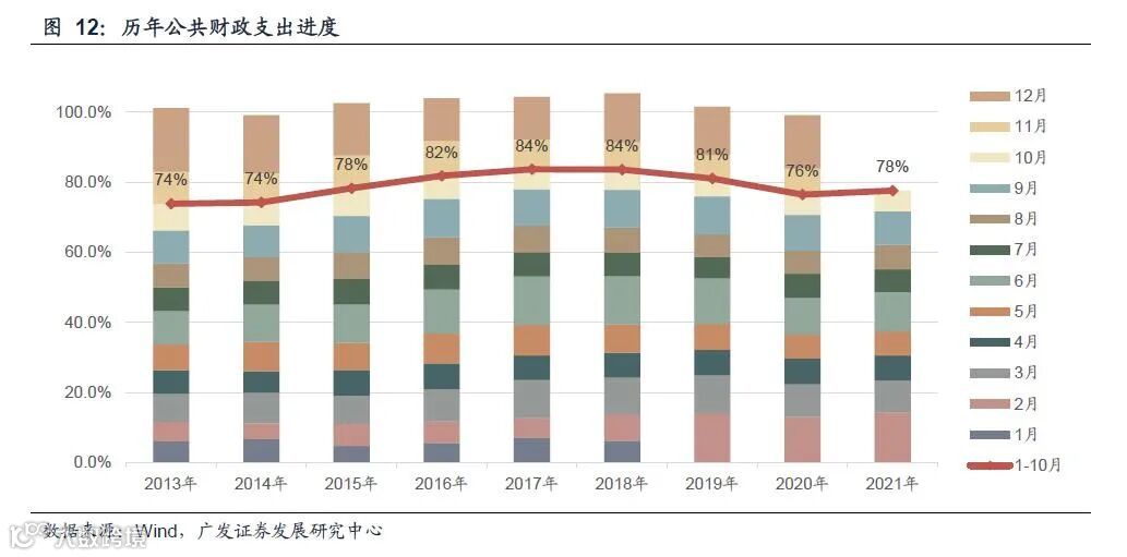 与之形成对比的便是支出偏慢,今年上半年的支出进度是48%,明显低于近年同期水平,1-10月进度达78%,全年完成支出目标的概率偏低。当然这也将进一步为明年的财政支出补充弹药,具体测算见下文。