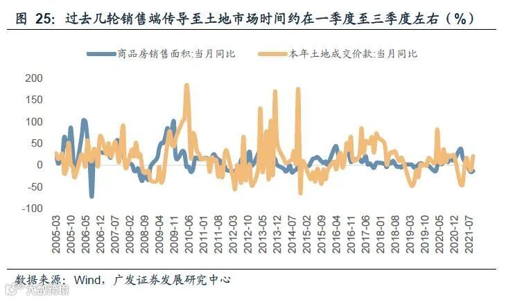 其中,第一轮周期土地出让收入累计同比大约自2005年年中开始下行,至2006年一季度左右低位回升,历时约9个月,最大下行幅度约25个百分点(统计局口径);