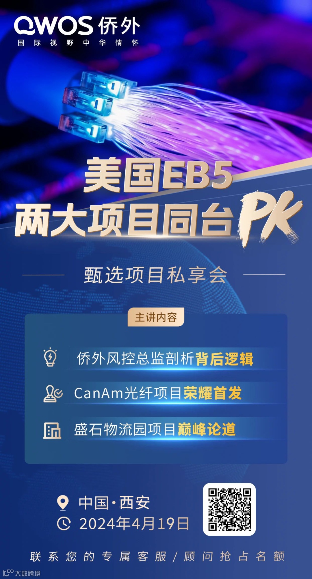 4月19日本周六,侨外出国将举办“美国EB5两大项且同台PK”私享会,为您带来一场高规格的项目甄选盛宴!