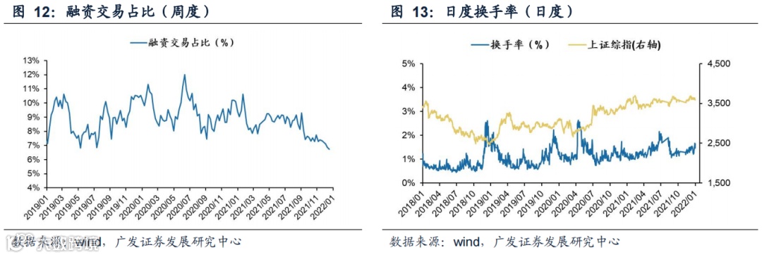(2)日度换手率: 上周为1.1%,前一周为1.3%。