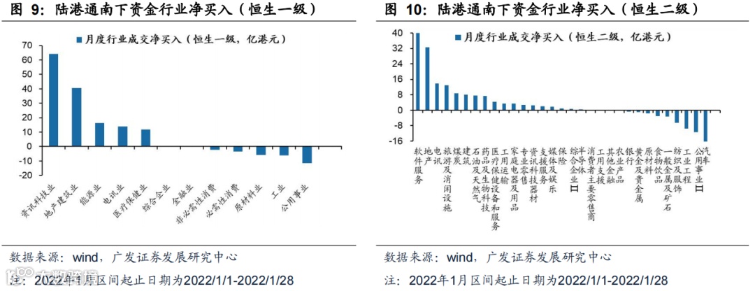 恒生一级行业净买入前三名为资讯科技业、地产建筑业、能源业,恒生二级行业净买入前三名为软件服务、地产、电讯。
