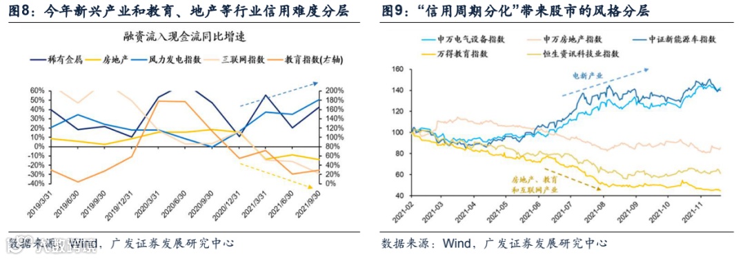 这就带来结构性信用扩张的“双碳”领域构成了21年第二个贝塔——“房住不炒”“双减政策”“互联网反垄断”带来相关产业信用紧缩;而 “绿色贷款”“普惠贷款”等结构性信贷政策支持下,新能源等为代表的新兴产业得以 “信用扩张” 。产业趋势及政策导向决定景气度分化,带来了股市的风格分化。