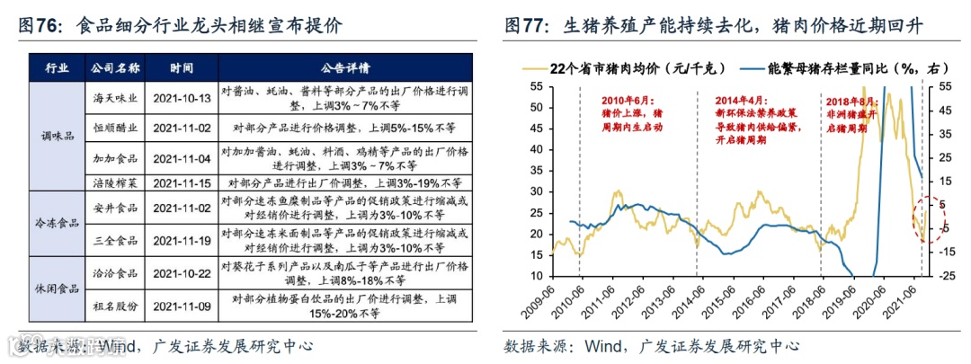 线索二:PPI向CPI传导之下,部分消费行业提价兑现。