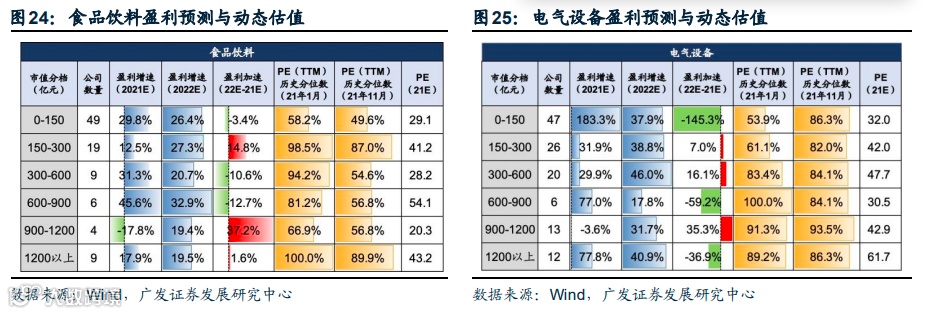 如果进一步综合各宽基指数、各市值区间22年的盈利预测与动态估值,我们倾向于判断22年的市场风格很难形成“一边倒”态势,以板块内部的性价比考量为主。