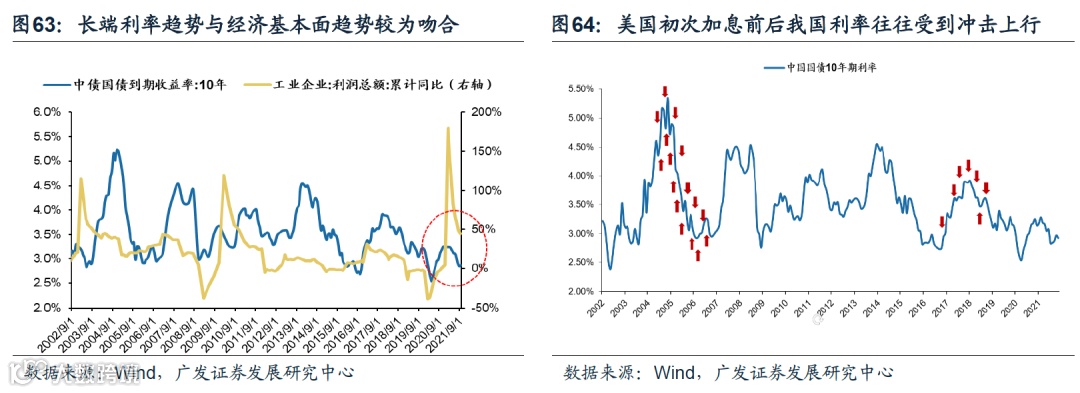 但需要关注美联储加息对狭义流动性的冲击。虽然当前中美利差仍然较高,但①历史来看,美国初次加息前后我国10年期国债利率往往受到冲击上行。②本轮“通胀+加息”背景下美债利率上行压力或较大,或挤压我国货币政策空间。即如果未来美联储货币政策超预期收紧,美债利率超预期上行,中美利差受到快速挤压,可能会对我国的货币政策带来负面的冲击。由于当前美联储面临“通胀快速上行+变异株可能损伤经济”的两难境地,未来美联储政策将举步维艰,我们需要密切跟踪2022年美联储的货币政策走向。