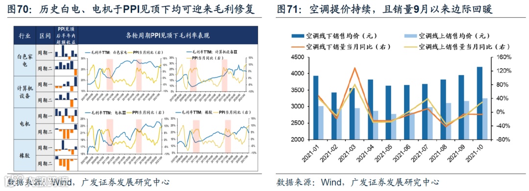 当前来看,白电、电机的毛利率存在企稳复苏迹象。空调价格自今年5月起持续抬升,销量增速亦于9月边际回暖;受益于新能源汽车等下游需求,电机毛利率亦有望底部修复。