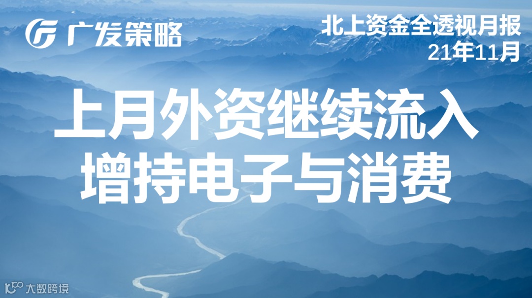 流量:北上资金11月份净流入227亿元,连续十四个月保持净流入。自20年10月起北上资金连续十四月大幅净流入,总流入规模达4794亿元。北上资金11月份净流入227亿元,与10月份净流入333亿元相比流入幅度有所下降。21年前十一个月北上资金累计净流入规模3431亿元,为2015年以来同期净流入规模最高值。
