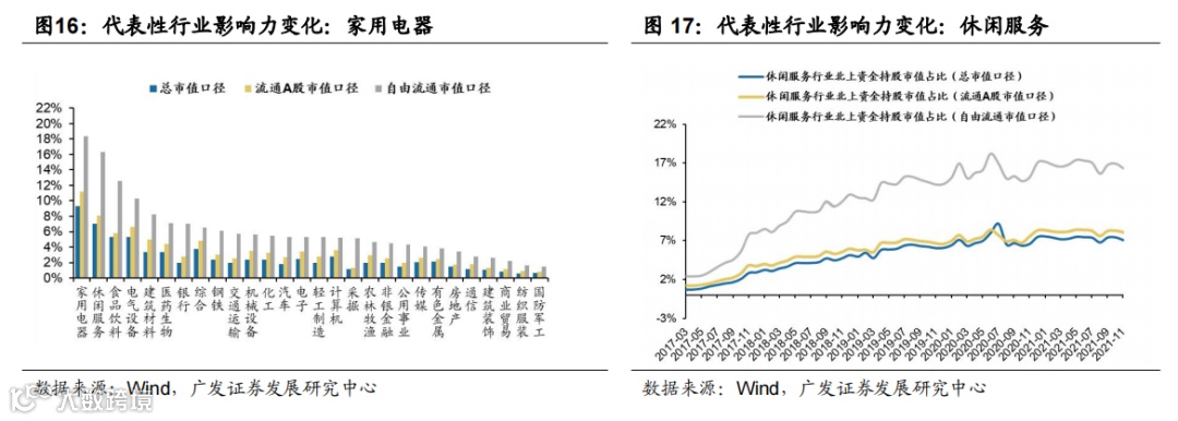 存量-行业影响力:北上资金在家电的持股占自由流通市值之比约为18.38%,相比10月份的19.17%有所下降。