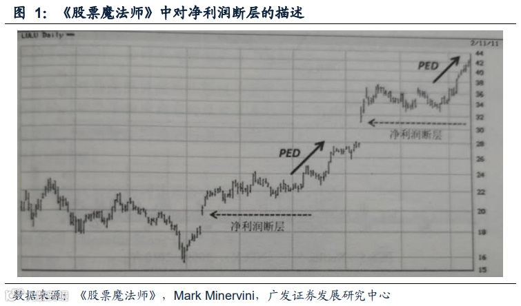 净利润断层是指上市公司发布超预期的业绩公告后,股价出现跳空上涨的现象。美国著名投资大师MarkMinervini在《股票魔法师》一书中曾详细描述了“净利润断层”策略在美股投资的应用。净利润断层本身包含两大要素,要素之一是上市公司发布的业绩超预期,要素之二是上市公司股价在发布业绩后的首个交易日跳空上涨。跳空上涨的具体表现是当日最低价超越前一交易日的最高价,形成一个向上跳空的缺口,在K线图上形成类似断层的走势。由于这种缺口是由业绩超预期引发的,因此称之为净利润断层。