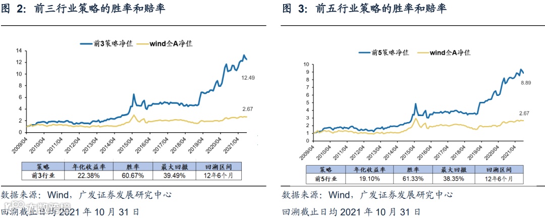 前五行业策略:截止10月31日,策略在过去12年6个月的年化收益率为19.10%,相对7月13日下滑0.14pct;策略相对万得全A的胜率为61.33%,相对7月13日上行0.11pct。