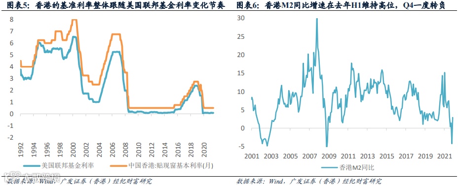 我们在《10年美国国债收益率点评》和《港股的需求侧改革》中,曾经对美债收益率的走势及其对港股估值变化的影响进行过梳理。从后视镜角度来看,去年3月的美债收益率上升更像是预期的改变,而并非流动性层面的实质变化——美联储仍维持零息政策,香港基准利率保持不变,流动性指标在H1并未明显转差。另外,美债收益率自4月起便开始回落,美股在经历月余的调整后也很快重回升轨。不过,即便只是单纯的“虚晃一枪”,就已经足以把彼时处于“高处不胜寒”位置的港股的估值中枢打下一个台阶,且后续“渐行渐远”,与主流市场的表现背道而驰。因此,该阶段港股的杀估值现象,更多是情绪转弱和信心不足的结果,也是一种“狼来了”利空预期的自我实现。