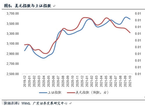 主要风险因素是美元指数所代表的全球流动性扰动,下半年美元指数从90震荡上行至94附近。2020年以来权益市场与美元指数的负相关性相对较高。