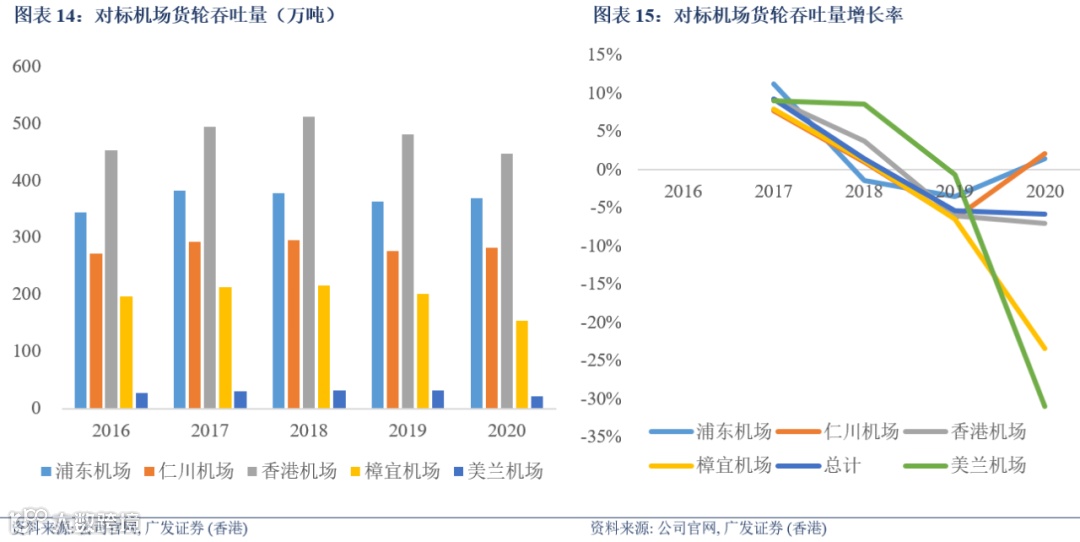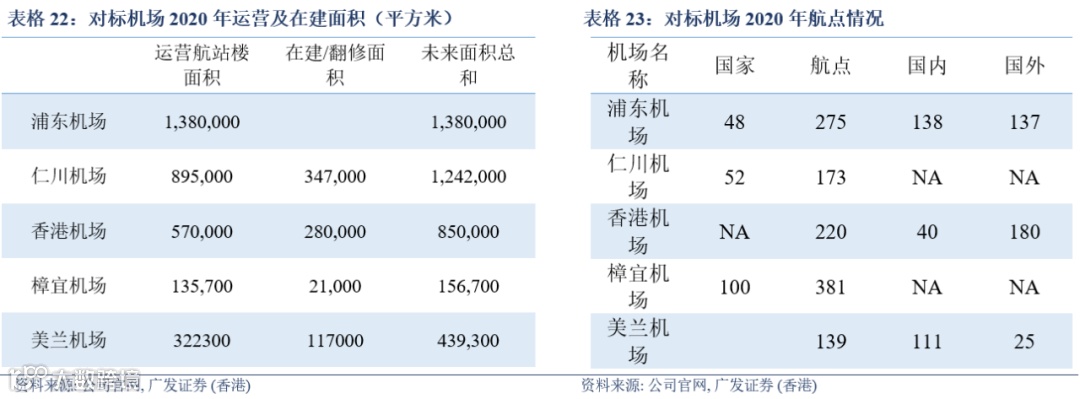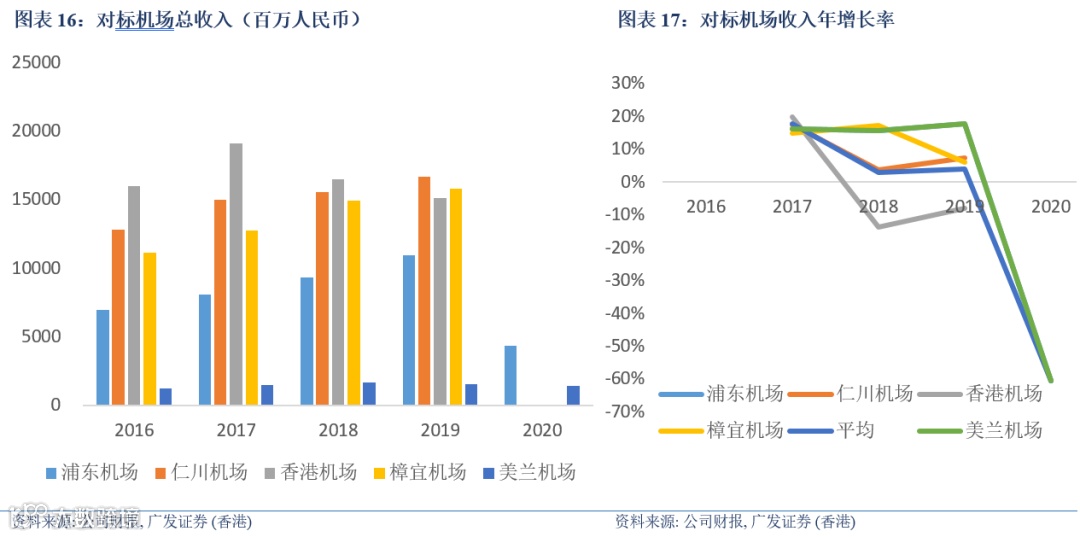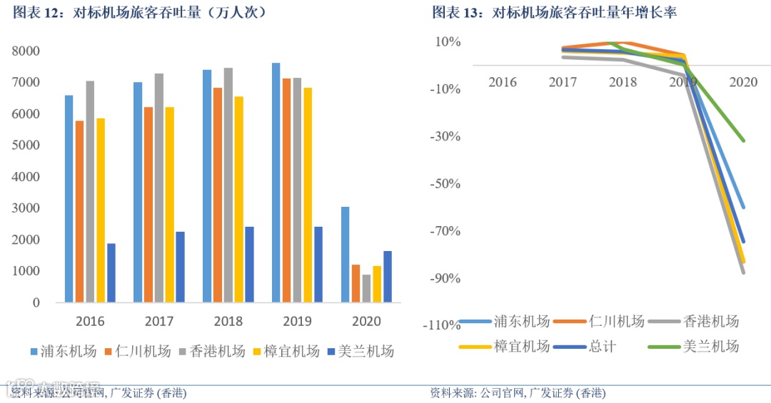 综合比较对标机场的业务情况,目前美兰空港与对标机场有一定差距,随着机场二期等工程的建设,运输能力的增强,从业务增长量来看,具有增长的基础。
