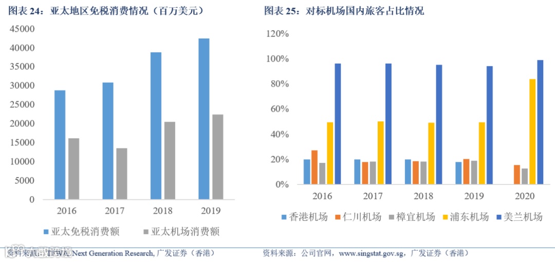 在亚太地区,机场免税消费额在2019年末高达224.6亿美元,亚太地区免税消费总额为4249.3亿美元,亚太地区机场免税销售额占亚太地区总消费额的52.9%,中国游客海外免税购物额占其中的42.4%,占比较高,机场免税购物模式具有一定优势。该部分人群相比于国内免税消费群体8%的亚太消费份额,购买力较高。综合考虑出行成本以及签证办理等因素,美兰机场在吸引这部分潜在消费群体中具有优势。