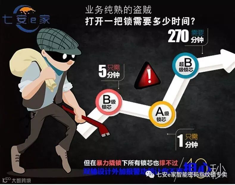 这叫技术开启锁具,锁芯等级在A级的锁芯,在工具恰当,时间允许的条件下,技术开启时间为一分钟。贼主观上愿意开启这种锁,客观上也是锁子的有效防盗时效太短,防开时效为15分钟。锁芯等级在B级的锁芯,在工具恰当,时间允许的条件下,技术开启时间为五分钟。贼主观上也愿意开启这种锁,客观上还是锁子的有效防盗时效太短,防开时效为30分钟。锁芯等级为超B级的锁芯,在工具恰当,时间允许的条件下,技术开启时间为四个小时。贼主观上不愿意开启这种锁,客观上当然是锁子的有效防盗时效太长,防开时效为270分钟。