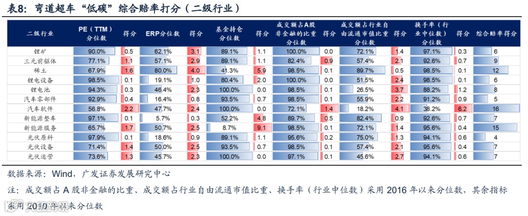 胜率方面,凭借全球领先技术叠加“碳中和”政策加速,新能源汽车与光伏产业链盈利空间较大。赔率方面,本周“低碳”方向新能源汽车估值相对高位,光伏产业链相对低位。基金持仓方面,新能源汽车、光伏产业链皆获2季度基金显著加仓。