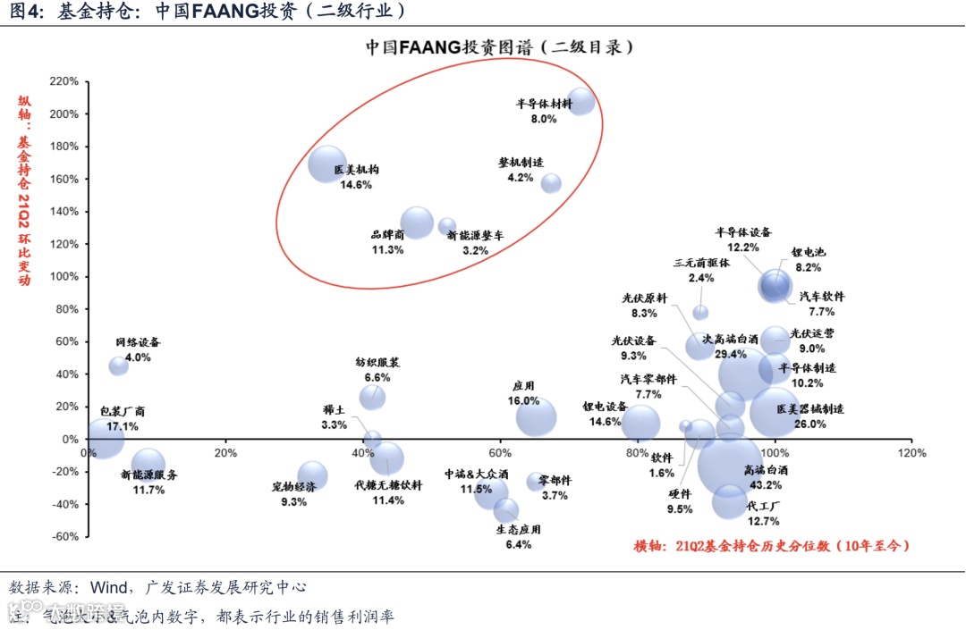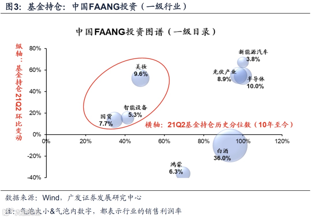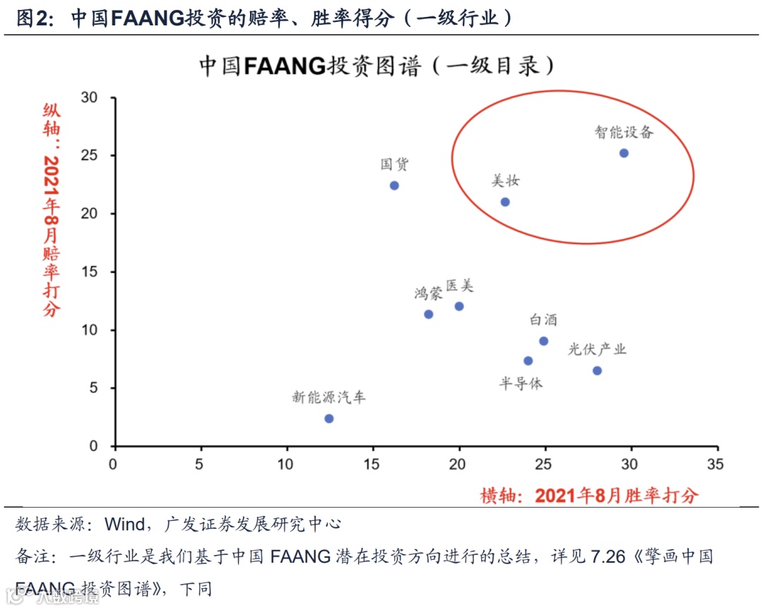 我们在6.16《从FAANG看A股“热门股”行情》指出,高质量发展政策牵引下,中国逐步转向“领先型”经济体, A股利润率回升,“热门股”有望长牛。根据利润率潜在改善逻辑,我们分别从“消费/智造/低碳”3条线索构建了中国版FAANG投资图谱(详见7.26《擎画中国FAANG投资图谱》)。