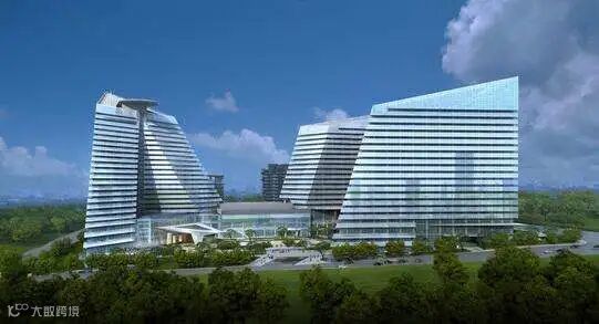 上图是万众国际鸟瞰图,侨外出国在A座(左一)