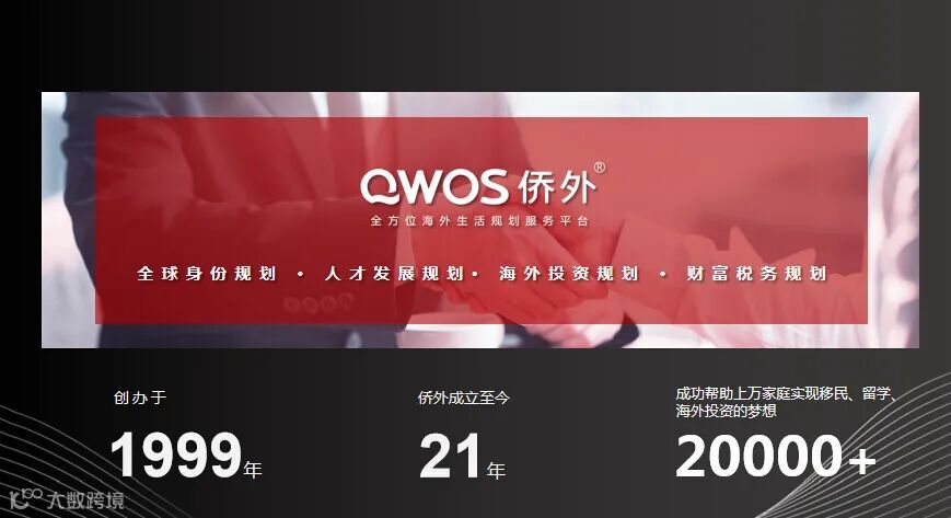 侨外出国(QWOS)是经公安部、工商总局认证批准的中国公民因私出入境服务机构。侨外创办于1999 年,先后于北京、上海、广州、深圳、陕西、佛顺等国内多个城市成立直属分公司,并在亚欧美等国家设立海外直属公司和客户服务中心。发展至今,已成功为上万家庭及个人实现移民海外、出国留学的梦想。
