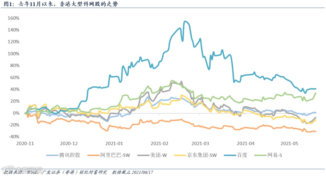 自今年2月中旬以来,港股市场的大型科网股走势显著承压,主要受平台经济监管措施逐步收紧、全球范围内“宅经济”红利减退和美债收益率走高等三大因素所制约: