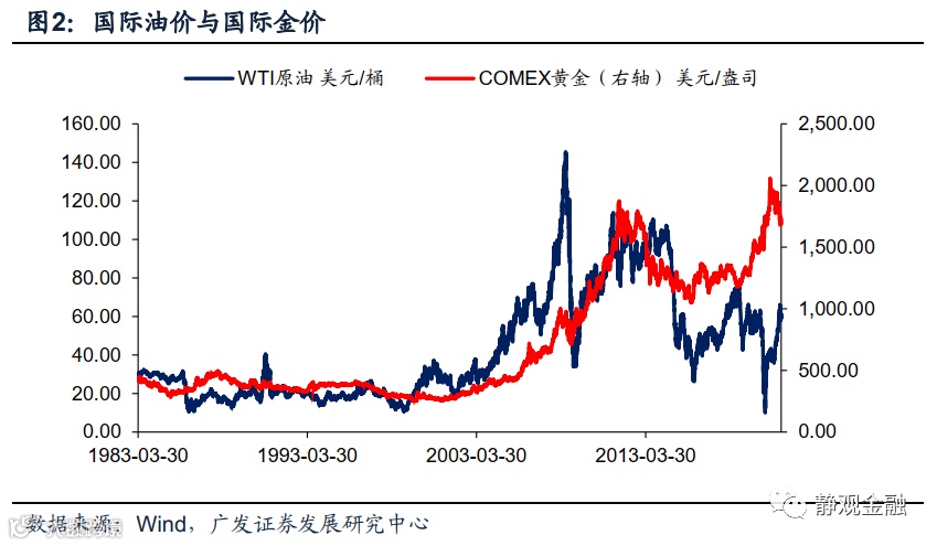 2)在无长期高通胀的前提下,我们甚至可以认为“原油不止涨、黄金不上涨”。
