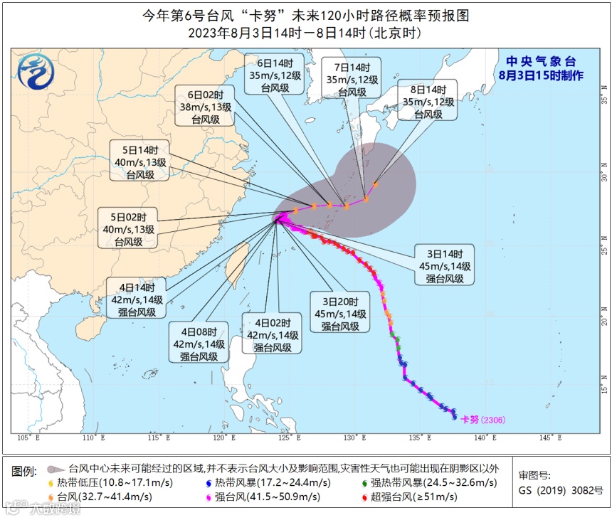 不过转折点很快就会到来。据浙江省气象台预计,“卡努”最大可能于今天(3日)夜里至明天(4日)上午在浙江南部近海转向东北方向移动。