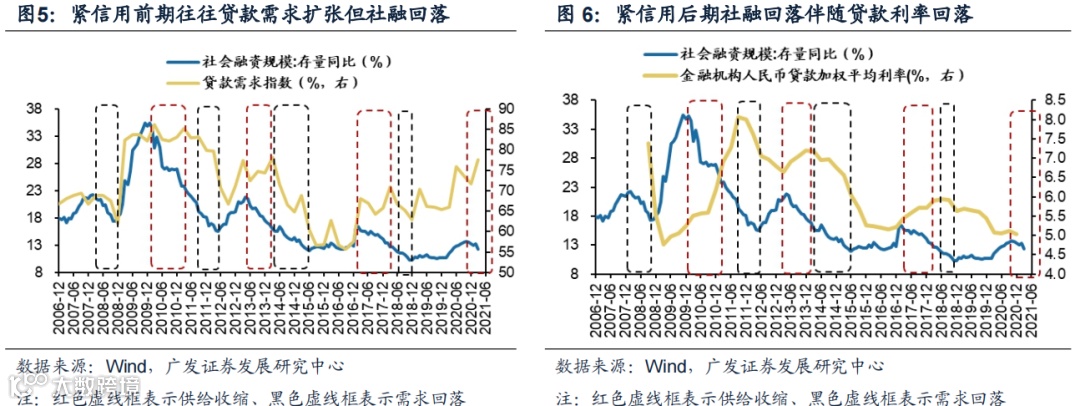 (三)当前需求扩张+信用收缩,处于信用供给主导的主动收缩阶段,A股盈利仍具备韧性支撑。信用周期和盈利周期存在传导效应,信用周期拐点往往领先于盈利周期拐点1-2个季度。3月社融确认信用进入收缩周期,使得市场对于盈利韧性存疑,亦形成了相对较快的行业轮动。从历史规律来看,我们可以将信用收缩大致分为两类:1. 信用供给主导的主动收缩,通常表现为贷款需求上行、贷款利率上行但社融增速回落,如10年1月-11年3月、13年4月-14年3月、17年1月-18年3月。2. 信用需求回落主导的被动收缩,通常表现为贷款需求回落、贷款利率回落叠加社融增速回落,如08年2月-10月、11年9月-12年5月、14年3月-15年6月、18年6月-18年12月。历史规律来看,紧信用初期往往是供给主导的主动收缩,紧信用后期呈现需求主导的被动收缩,两者时滞约为一年。